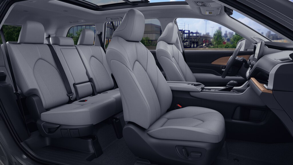 - 7-passenger seating with second-row fold-down captain's chairs and fold-down inboard armrests, adjustable headrests and two cup holders mounted on the floor; and 60/40 split, fold-down third-row seats with sliding headrests and recline function.