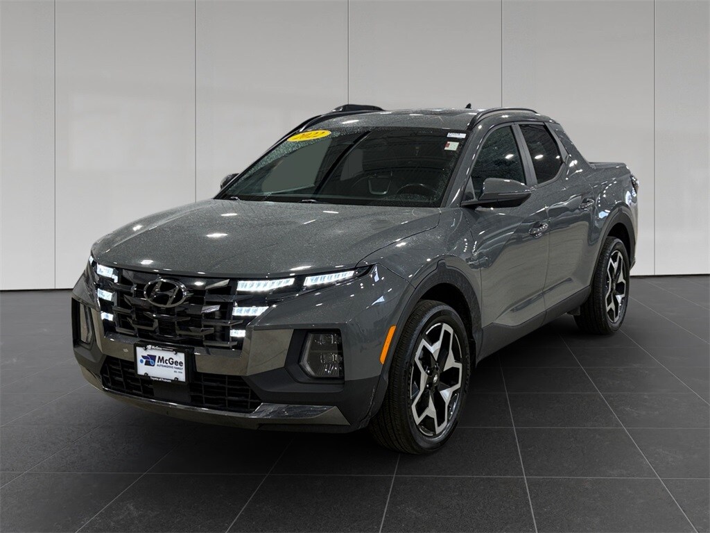 McGee Toyota of Putnam is proud to present you with another True Market Priced Pre-Owned Vehicle. This 2022 Hyundai Santa Cruz Limited is loaded with the following Factory Options: Option Group 01, 4-Wheel Disc Brakes, 4.846 Axle Ratio, 8 Speakers, ABS brakes, Air Conditioning, Alloy wheels, AM/FM radio: SiriusXM, Apple CarPlay & Android Auto, Auto High-beam Headlights, Auto-dimming Rear-View mirror, Auto-leveling suspension, Automatic temperature control, Bed Cargo Net, Brake assist, Bumpers: body-color, Carpeted Floor Mats, Delay-off headlights, Driver door bin, Driver vanity mirror, Dual front impact airbags, Dual front side impact airbags, Electronic Stability Control, Emergency communication system: Blue Link Connected Car Service (3-year complimentary subscription), Envelop Cargo Net, Exterior Parking Camera Rear, First Aid Kit, Four wheel independent suspension, Front anti-roll bar, Front Bucket Seats, Front Center Armrest, Front dual zone A/C, Front reading lights, Fully automatic headlights, Garage door transmitter: HomeLink, Heated & Ventilated Front Bucket Seats, Heated door mirrors, Heated front seats, Heated steering wheel, Illuminated entry, Leather Seat Trim, Leather Shift Knob, Low tire pressure warning, Mudguards, Navigation System, Occupant sensing airbag, Outside temperature display, Overhead airbag, Overhead console, Panic alarm, Passenger door bin, Passenger vanity mirror, Power door mirrors, Power driver seat, Power moonroof, Power steering, Power windows, Radio data system, Radio: AM/FM w/Bose Premium Audio System, Rain sensing wipers, Rear anti-roll bar, Rear step bumper, Rear window defroster, Remote keyless entry, Security system, Speed control, Speed-sensing steering, Split folding rear seat, Spoiler, Steering wheel mounted audio controls, Tachometer, Telescoping steering wheel, Tilt steering wheel, Traction control, Trip computer, Turn signal indicator mirrors, Variably intermittent wipers, Ventilated front seats, and Wheels: 20" x 7.5J Alloy!!