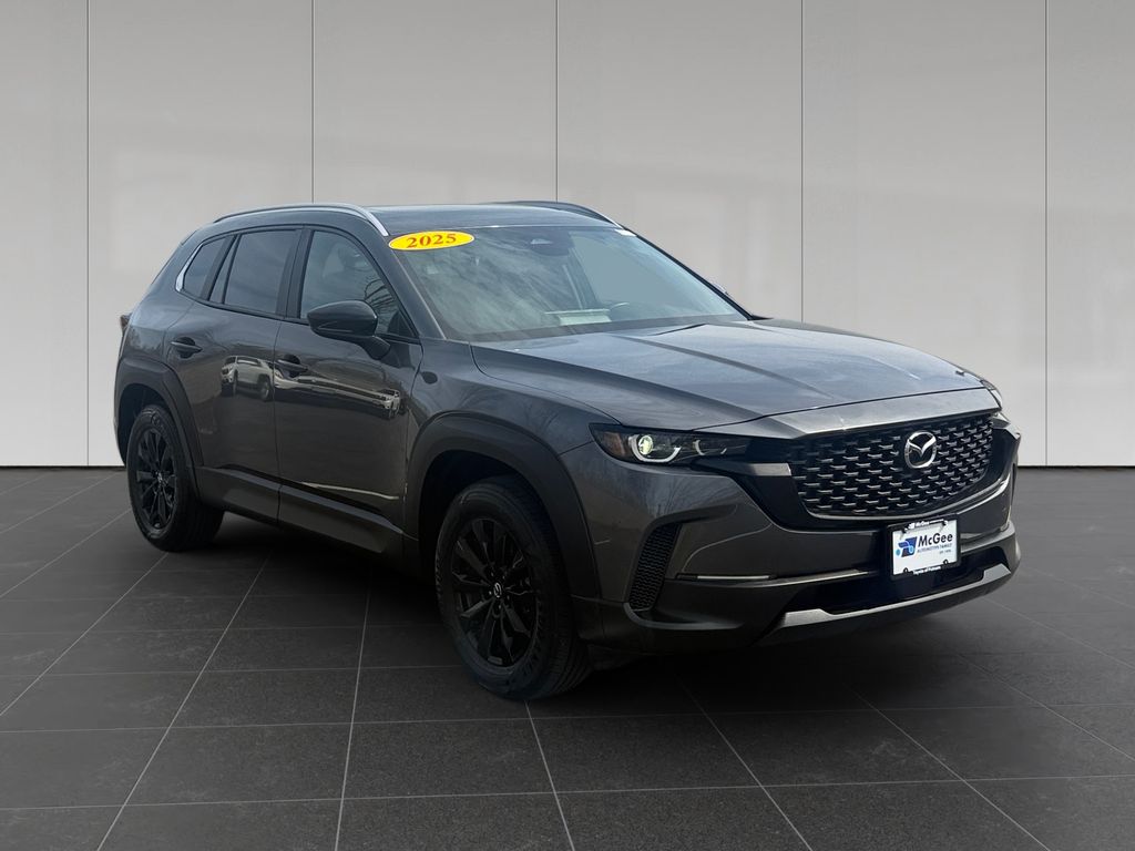 McGee Toyota of Putnam is proud to present you with another True Market Priced Pre-Owned Vehicle. This 2025 Mazda CX-50 2.5 S Premium Package is loaded with the following Factory Options: 12 Speakers, 4-Wheel Disc Brakes, ABS brakes, Air Conditioning, Alloy wheels, AM/FM radio: SiriusXM, AppLink/Apple CarPlay and Android Auto, Auto High-beam Headlights, Automatic temperature control, Brake assist, Bumpers: body-color, Delay-off headlights, Driver door bin, Driver vanity mirror, Dual front impact airbags, Dual front side impact airbags, Electronic Stability Control, Emergency communication system: MAZDA CONNECT, Exterior Parking Camera Rear, Front anti-roll bar, Front Bucket Seats, Front Center Armrest, Front dual zone A/C, Front reading lights, Front wheel independent suspension, Fully automatic headlights, Half Leatherette Seat Trim, Heated door mirrors, Heated front seats, Heated Front Seats w/3 Level Adjustment, Illuminated entry, Knee airbag, Leather Shift Knob, Leather steering wheel, Low tire pressure warning, Machine Gray Metallic Paint Charge, Occupant sensing airbag, Outside temperature display, Overhead airbag, Overhead console, Panic alarm, Passenger door bin, Passenger vanity mirror, Power door mirrors, Power driver seat, Power Liftgate, Power moonroof, Power steering, Power windows, Radio data system, Radio: AM/FM/HD Bose 12-Speaker Audio Sound System, Rain sensing wipers, Rear seat center armrest, Rear window defroster, Rear window wiper, Remote keyless entry, Speed control, Speed-sensing steering, Split folding rear seat, Spoiler, Steering wheel mounted audio controls, Tachometer, Telescoping steering wheel, Tilt steering wheel, Traction control, Trip computer, Turn signal indicator mirrors, Variably intermittent wipers, and Wheels: 17" x 7J Aluminum Alloy Black Metallic Finish!!