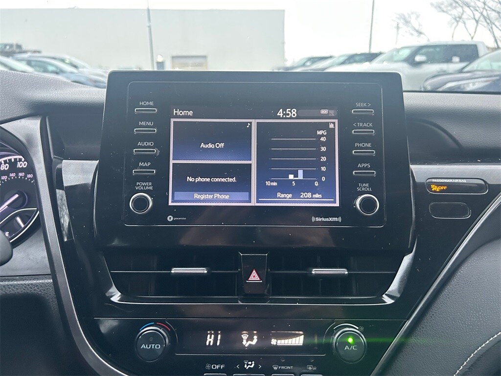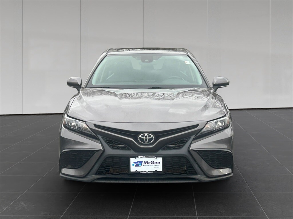 McGee Toyota of Putnam is proud to present you with another True Market Priced Pre-Owned Vehicle. This 2021 Toyota Camry SE is loaded with the following Factory Options: Black w/Fabric Seat Trim w/Sport SofTex, ABS brakes, Active Cruise Control, Alloy wheels, Electronic Stability Control, Illuminated entry, Low tire pressure warning, Remote keyless entry, and Traction control Black w/Fabric Seat Trim w/Sport SofTex, ABS brakes, Active Cruise Control, Alloy wheels, Electronic Stability Control, Illuminated entry, Low tire pressure warning, Remote keyless entry, Traction control, 4-Wheel Disc Brakes, 6 Speakers, Air Conditioning, AM/FM radio: SiriusXM, Apple CarPlay/Android Auto, Auto High-beam Headlights, Automatic temperature control, Brake assist, Bumpers: body-color, Delay-off headlights, Driver door bin, Driver vanity mirror, Dual front impact airbags, Dual front side impact airbags, Emergency communication system: Safety Connect with 1-year trial, Exterior Parking Camera Rear, Fabric Seat Trim w/Sport SofTex, Four wheel independent suspension, Front anti-roll bar, Front Bucket Seats, Front Center Armrest, Front reading lights, Fully automatic headlights, Knee airbag, Occupant sensing airbag, Outside temperature display, Overhead airbag, Overhead console, Panic alarm, Passenger door bin, Passenger vanity mirror, Power door mirrors, Power driver seat, Power steering, Power windows, Radio data system, Radio: AM/FM Audio System, Rear anti-roll bar, Rear seat center armrest, Rear side impact airbag, Rear window defroster, Security system, Speed control, Speed-sensing steering, Split folding rear seat, Spoiler, Steering wheel mounted audio controls, Tachometer, Telescoping steering wheel, Tilt steering wheel, Trip computer, Variably intermittent wipers, and Wheels: 8.0J x 18" Black Machined-Finish Alloy!!